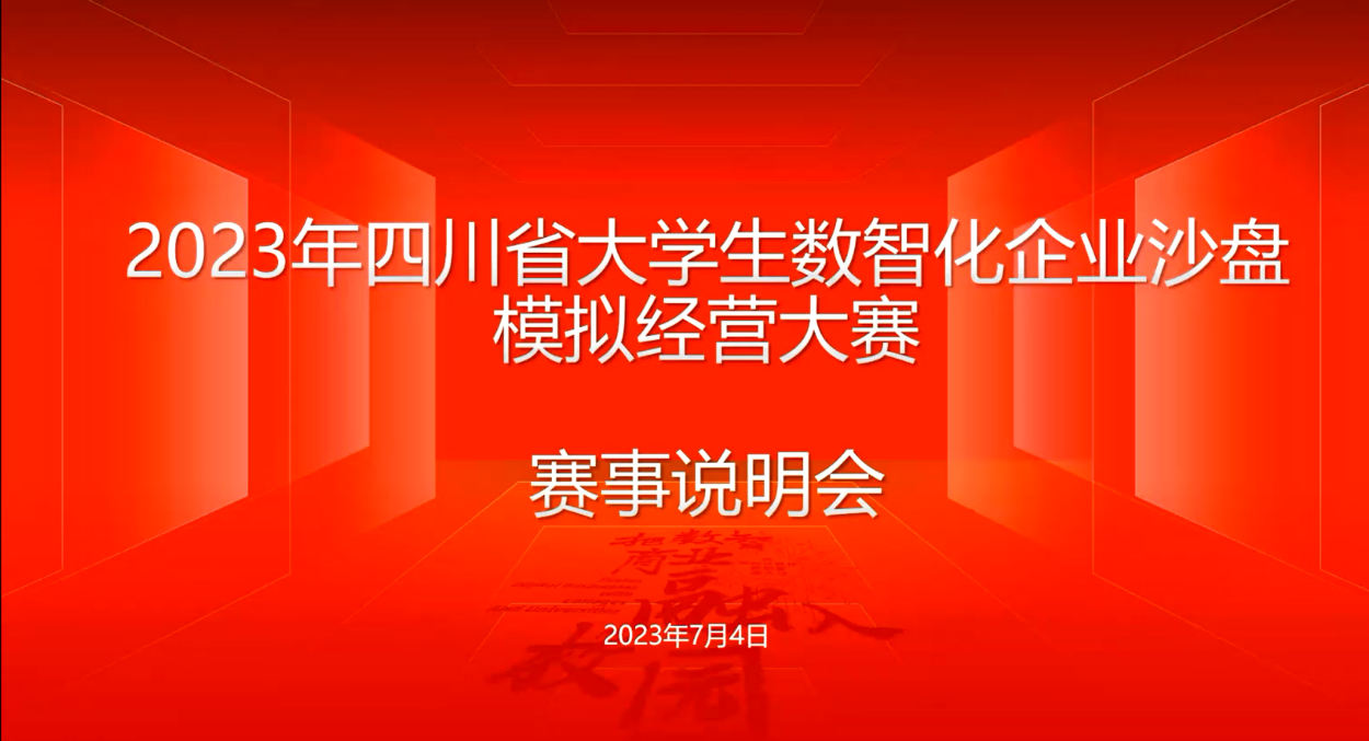 2023年7月4日,四川省大学生数智化企业沙盘模拟经营大赛组委会举行了赛事说明会,会议以腾讯会议方式召开,全省30多所本科院校相关领导、指导老师和学生参加了会议,与会人员还有betway88西汉姆联管理学院院长赵修文、副院长姚世斌,新道科技股份有限公司助理总裁侯爱华、技术总监陈自洪及其他相关工作人员。